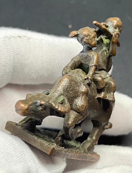闲置:铜“牧童放牛”工艺品摆件摆摊收来,......